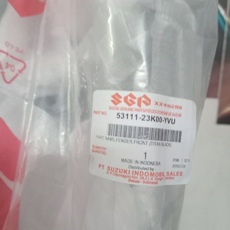 Front Mudguard GSXR 150 Indo, NAME,FENDER,FRONT BLACK 53111-23K00-YVU
