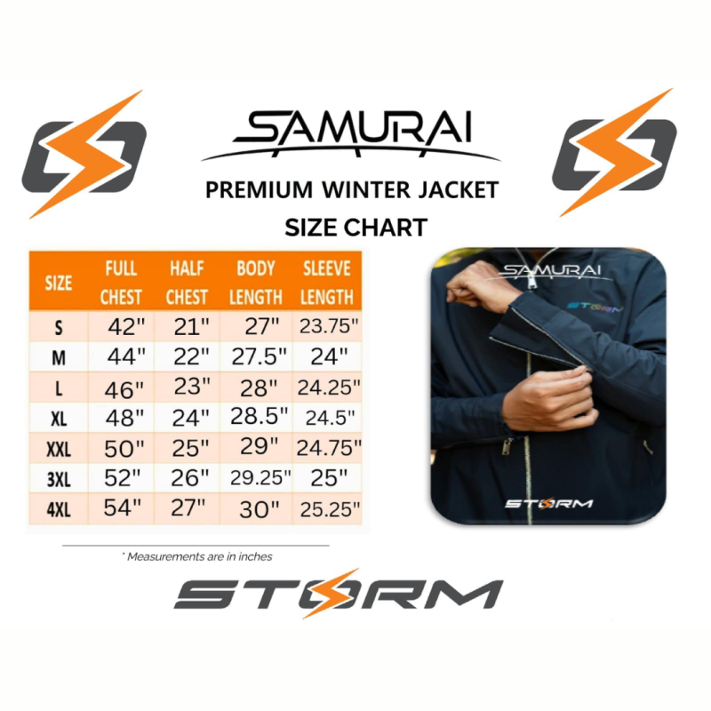 The Samurai Strom Winter Jacket might offer adjustable cuffs, waistbands, and collar settings, allowing riders to customize the fit for maximum comfort and protection.