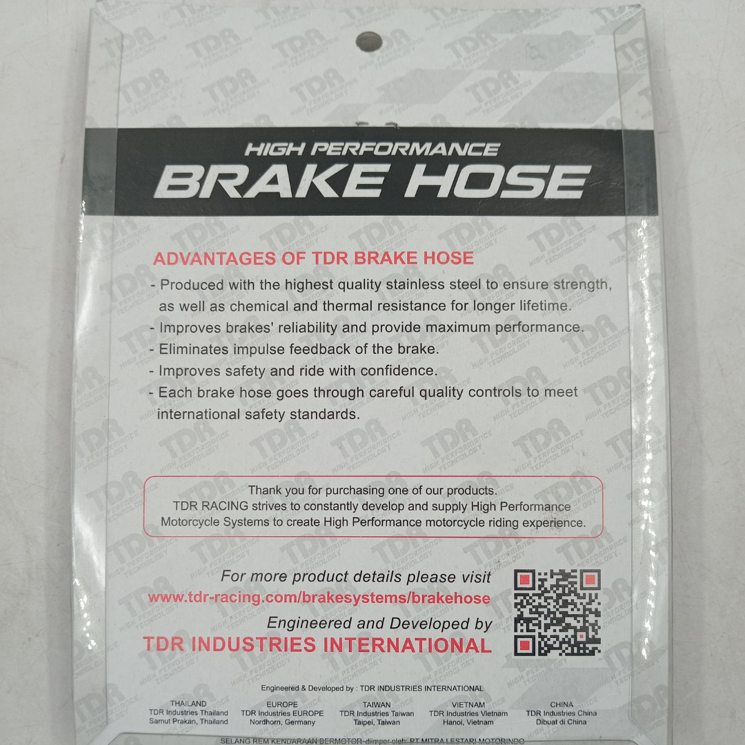 • Each Brake hose goes through careful quality controls to meet international safety standards.